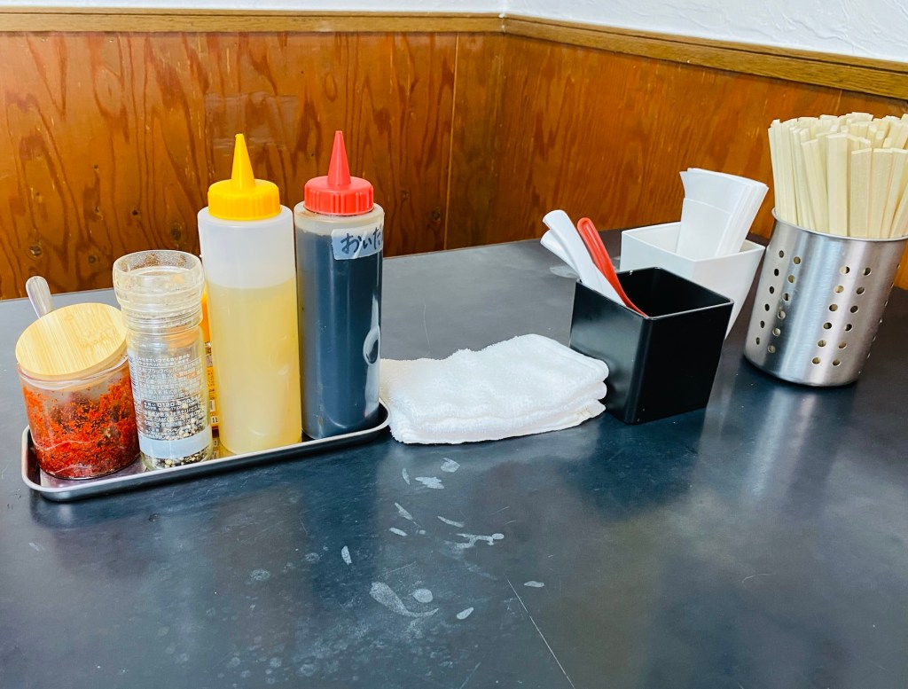 調味料はこんな感じ。紅生姜などもトッピング可能です!